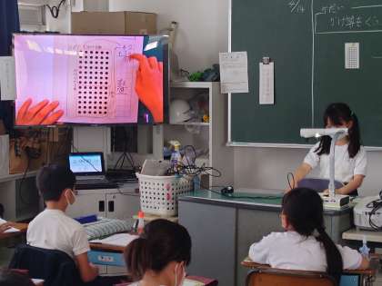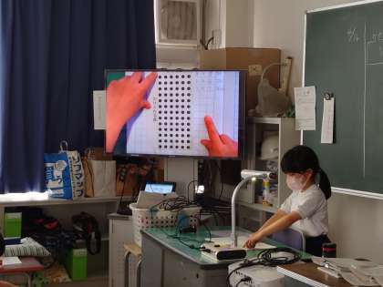 分配のやり方を利用して、かけ算問題を解く方法を考えて発表しました。(4月14日)