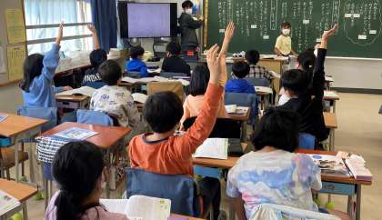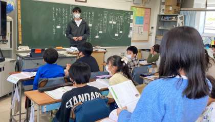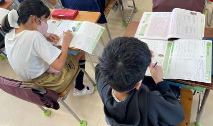 「命」をテーマにした学習です。11歳の生命を生ききった主人公の詩を読み、「精一杯生きる」とは、どのような生き方か、子どもたちは一人一人が真剣に考え、意見交換していました。