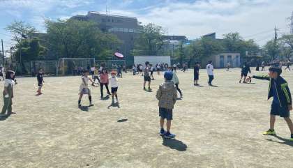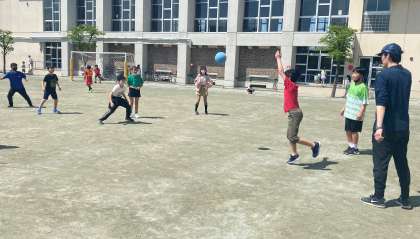 4年生はドッジビー、5年生はドッジボールを楽しんでいます。
