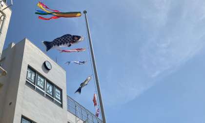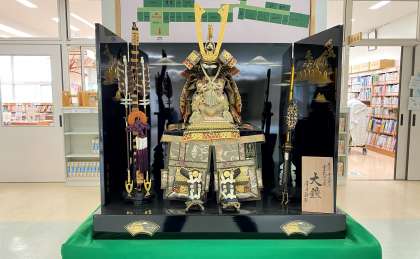 端午の節句が近づいてきました。校庭にはこいのぼりが泳ぎ、図書室前には五月人形を飾っています。鎧兜が身を守ることから、病気や事故などから子どもの体を守り、力強く育って欲しいという願いを込めて飾っています。子どもたちは季節の行事を楽しんでいます。