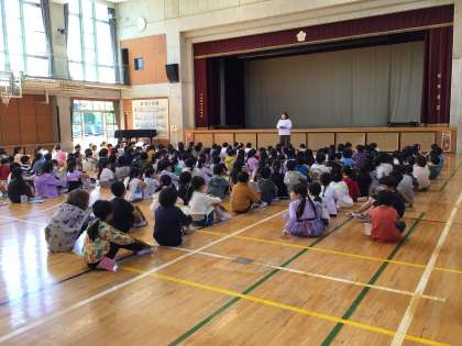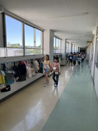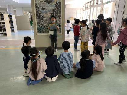 それぞれの場所で,2年生が紹介文を読んでいます。