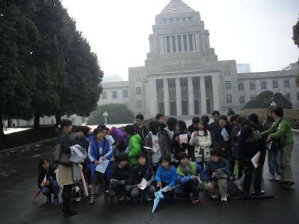 参議院を見学し、委員会の仕方などを他の学校と一緒に体験をしました。代表で委員や、大臣約をしました。