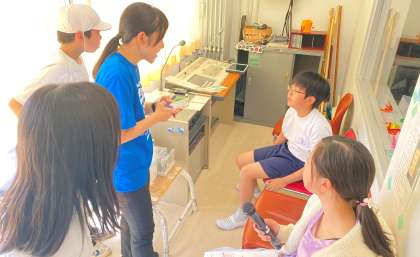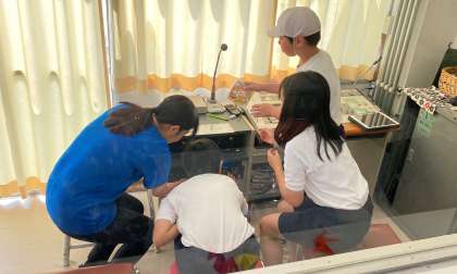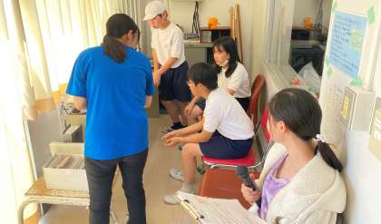 曜日ごとにチームを組み、お昼の放送を担当しています。今週の目標を伝えたり、選曲して音楽を流したりしています。