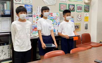 環境美化委員は、花壇に花を植えた報告をして、みんなで大切に育てていく呼びかけをしました。代表委員の児童は、運動会のスローガン『みんなで力を合わせて運動会を全力で楽しもう』についてお話し、看護当番の教員は、登下校、休み時間のきまりを確認して、今週の目標「時刻を守って生活しよう」についてお話しました。