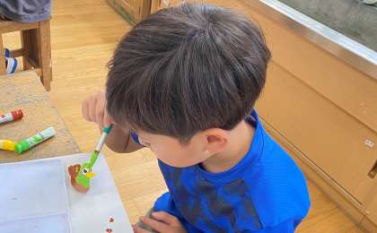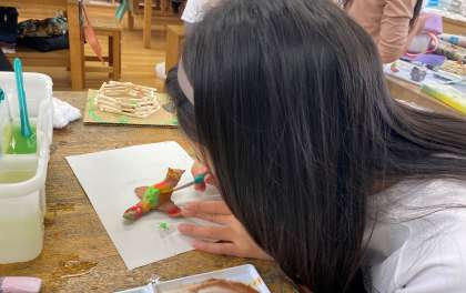 「トリの巣」の学習をすすめています。今日のめあては、『イメージを広げて、色をつけ、仕上げをしよう』です。子どもたちは、心を込めて、鳥に色をつけていました。