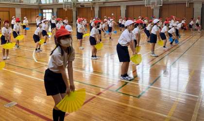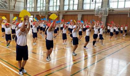 運動会に向けて、表現運動『Sence of Wonder』に取り組んでいます。体育館では、動きを一つ一つ覚えていきました。