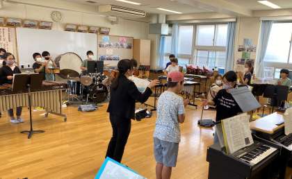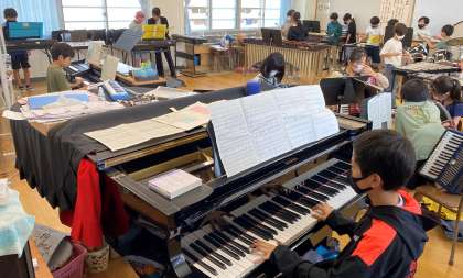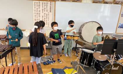合奏『キリマンジャロ』に取り組んでいます。パートごとに練習を重ね、力をつけています。合格をもらった子に拍手を送る場面も見られました。