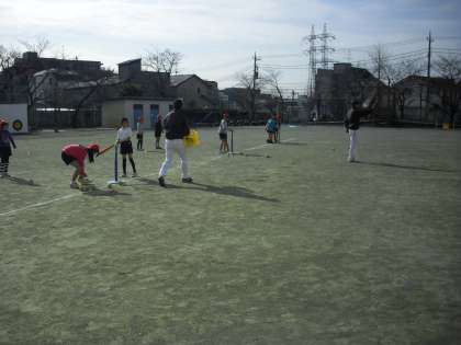 4年生は今日、ジャイアンツアカデミーの元選手の方に校庭で、T−ボールの指導を受けました。バットで遠くに飛ばす打ち方やボールの取り方と丁寧に楽しく教わりました。