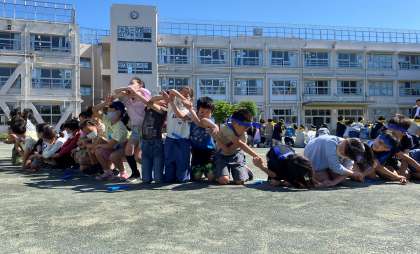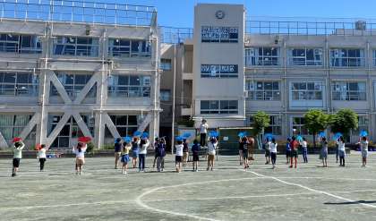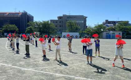 表現運動『Sence of Wonder』 扇子の操作にも慣れ、動きがなめらかです。波の演技を組み合わせて表現しています。