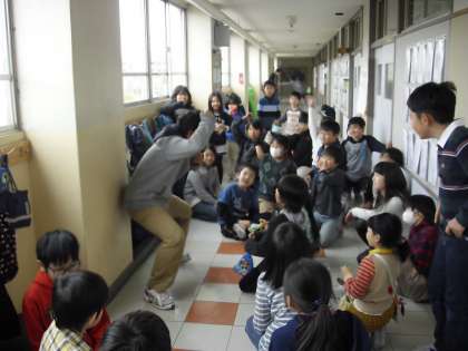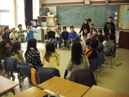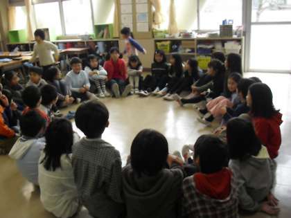 昨日の雪の影響で校庭が使えません。教室で各班で考えた遊びで、6年生と思い出をつくりました。担当の先生も遊びに参加しました。6年生卒業おめでとう。ありがとうございました。