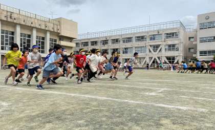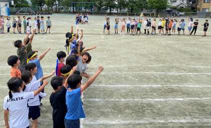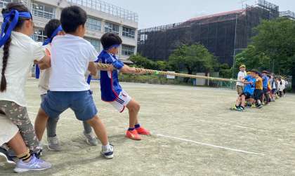 団体競技『お助け綱引き』力強い動きが印象的です。リハーサルでは引き分けでした。