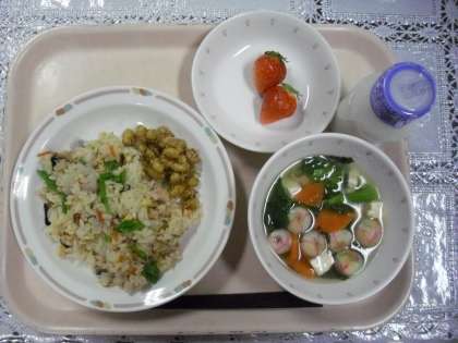 今日の給食は! 公開日 2012/03/02 更新日 2012/03/02 できごと 今日のメニューは、鮭ちらしずし、大豆とじゃこの甘辛揚げ、菜の花のすまし汁、イチゴ、牛乳でした。お便りも掲載しました。 いいね(0) 学校生活