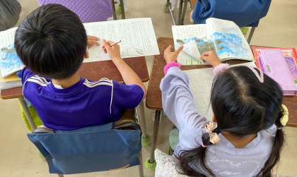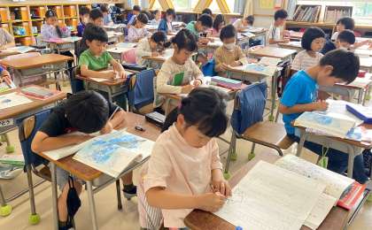 「スイミー」の学習を進めています。今日のめあては『まぐろのようすを読みとろう』です。読み取ったことをワークシートにまとめていきました。