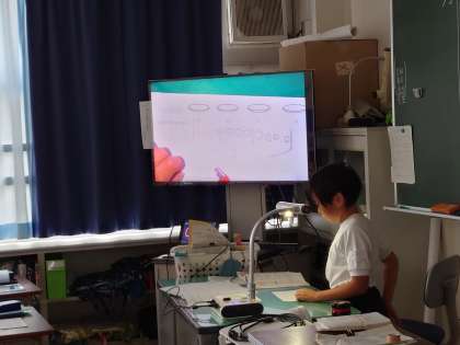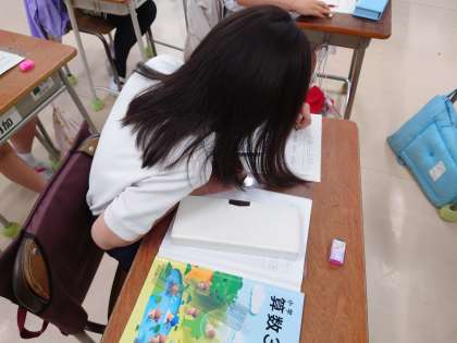 初めてのわり算の学習です。等しく分ける考え方を図を使って考え発表しました。(6月2日)