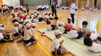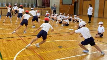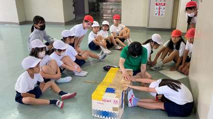 2年生、5年生が一緒のグループになり、計測しました。2年生は、5年生の様子を注意深く見ていました。