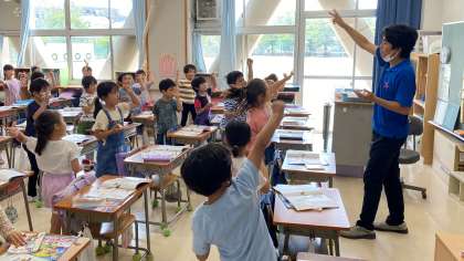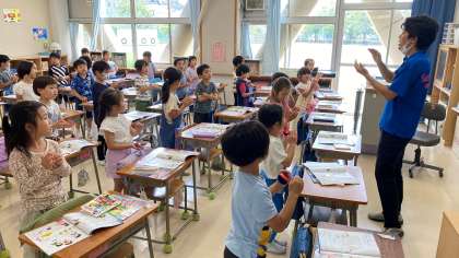 カスタネットを使ってリズムを打ち、「じゃんけんぽん」の演奏を楽しみました。