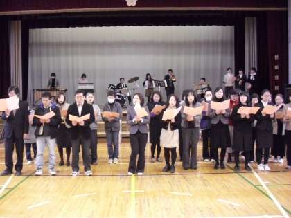 教職員みんなでお礼に「やさしさにつつまれたなら」の合奏と合奏をしました。