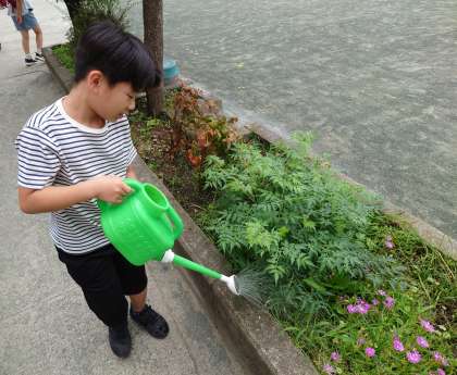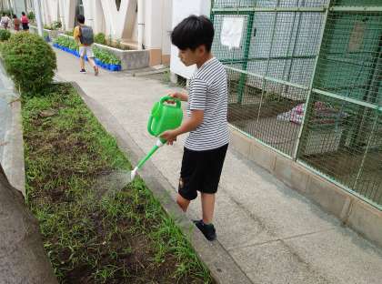 毎朝、委員会の人が校庭の植物に水やりをしています。(6月14日)