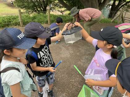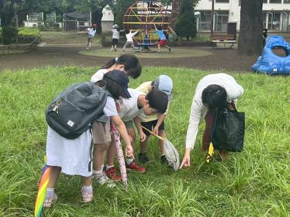 公園にはたくさんの虫がいました。 一生懸命虫取りをしています。
