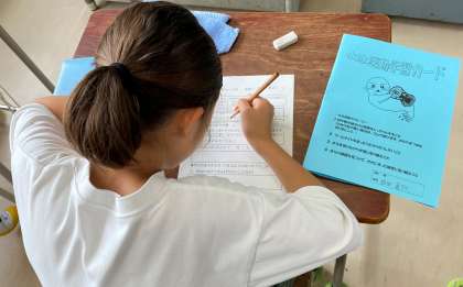 今日から水泳の学習が始まりました。今年の自分のめあてを立て、めあてを達成するために、どのように取り組んでいくか、プールに行く前に学習カードに記入しました。