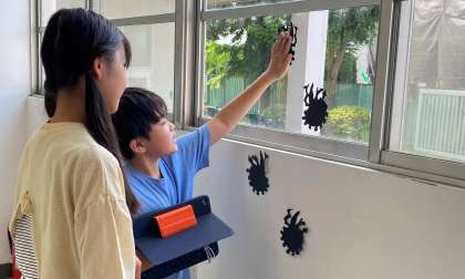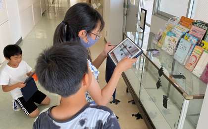 「すがたは見えないけれど」の学習をしています。『謎の生物』についてイメージを広げ、グループで相談して、足跡の形を決めました。