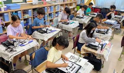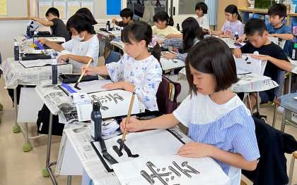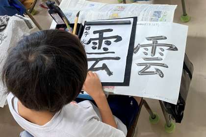書写の学習をしています。部分の組み立て方(上下)を意識して「雲」という文字を書きました。子どもたちは心を落ち着かせて、集中して取り組んでいました。