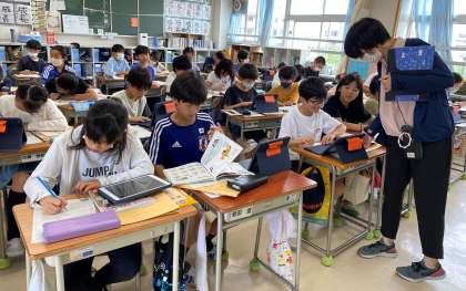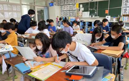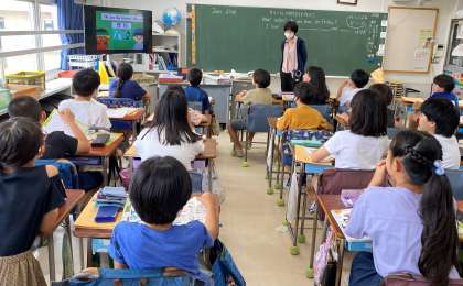 授業の前半はフォニックスアルファベットやチャンツの活動で盛り上がりました。後半は、『オリジナル時間割』をつくり、友達とお互いに紹介し合いました。