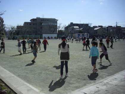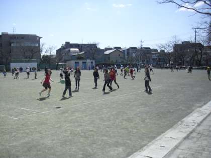 少し暖かい今日、子どもたちは、休み時間に校庭で元気に楽しそうに遊んでいました。