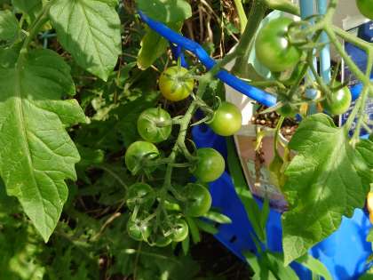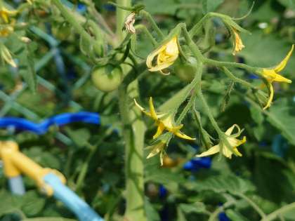 子ども達が育てているとまとにたくさんの実がなっています。(7月3日)