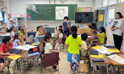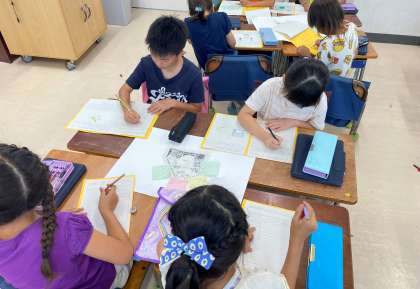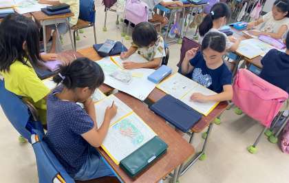 明日の校内研究研究授業に向けて、準備を進めています。今日は1組で「こうえん たんけん 大はっけん!」の授業を行いました。『公園の「すてき」を伝え合おう』の学習で、付箋を地図に貼ったり、タブレットで写真を見せたりしながら紹介していました。