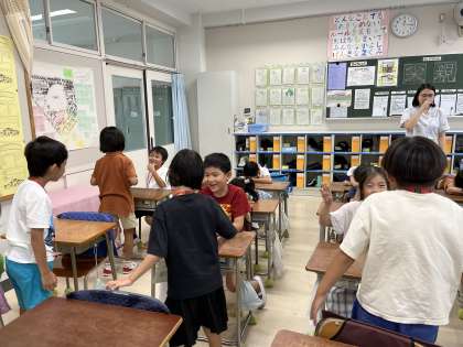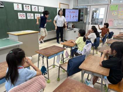 様々な動きを英語で言えるように楽しく学びました。