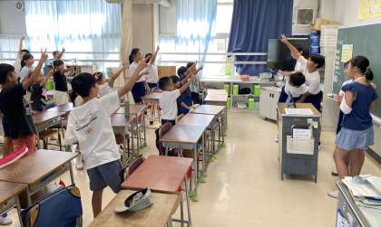 1年生〜6年生の縦割り班で活動する「仲良し班活動」は、4年ぶりの開催になります。班ごとに教室に集合し、自己紹介をしたり簡単なゲームをしたりして楽しみました。