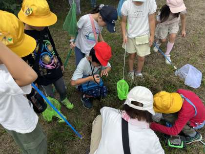 コオロギやバッタ、トンボ、ちょうちょが多く見られました。1年生も2年生も一緒に楽しみながら虫を捕まえていました。来月は、1,2年生合同で多摩川台公園に遠足へ行きます。