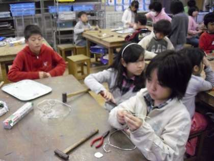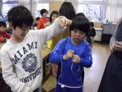 図工で針金と楽しむ作品作りで、いい考えを出していました。