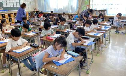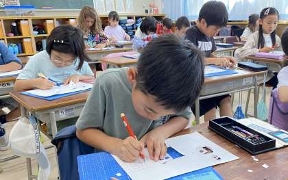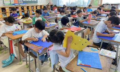 「まどのあるたてもの」を作っています。建物の形や窓の開け方を工夫して集中して取り組んでいました。カッターナイフの使い方にも慣れてきました。
