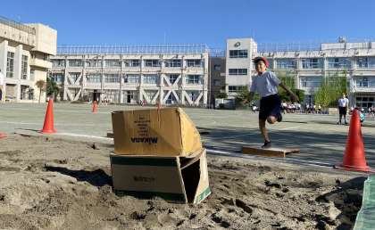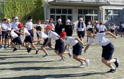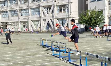 10月26日(木)に実施する連合運動会に向けて、朝練習を始めました。自分が出場する種目、100m走、50mハードル、走り幅跳びに分かれて練習しました。