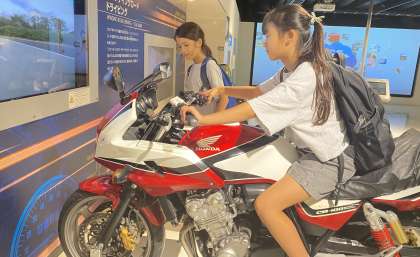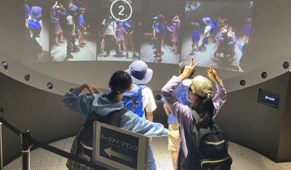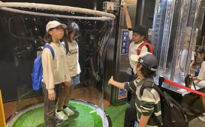大きなシャボン玉や竜巻など、試作と実験から生まれた展示もありました。大きなモニターをみながら、バイクや自動車の運転もしました。子どもたちにとっては、社会科、科学の学習とともに思い出に残る1日になったようです。