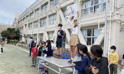 ユニセフ募金に向けて、ユニセフに関する問題で、〇×ゲームを実施しました。集会委員と代表委員が協力して、募金を呼びかけるよい機会になりました。