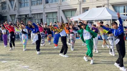 ダンスパフォーマンスは、『Non Stop Bombers』のみなさんが披露しました。学校生活とは、少し違った表情を見せていました。笑顔が光っていました。