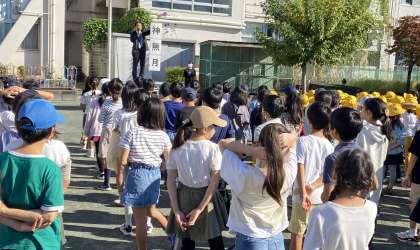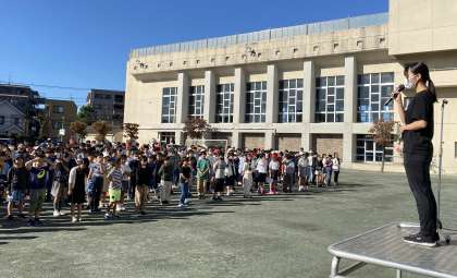 校長は、先日行われた玉堤フェスタのこと、10月「神無月」についてお話しました。次に保健委員の子どもたちが「歯クイズラリー」について説明しました。看護当番の教員は、今週の目標「遊んだ後の片付けをきちんとしよう」についてお話しました。