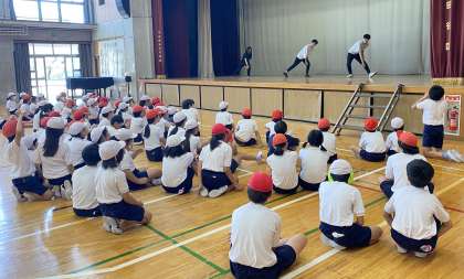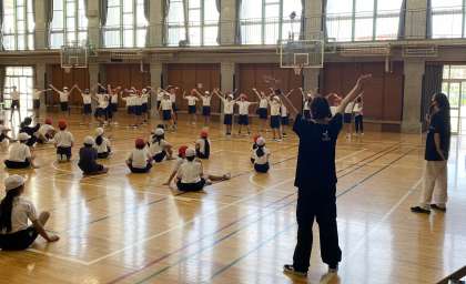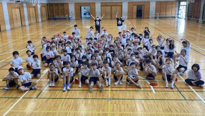 授業の最後には、クラスごとに発表会をしました。お互いに応援する姿勢もすばらしかったです。舞台では担任も踊り、子どもたちは大喜びでした。記念撮影もして充実したダンスの授業を終えることができました。