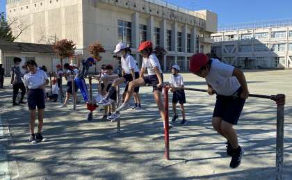 鉄棒運動の学習を進めています。学習カードを活用して、めあての技を決めて練習しています。意欲的に取り組み、できるようになってみんなで喜び合う場面も見られました。