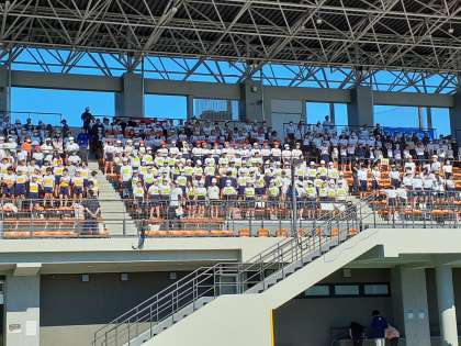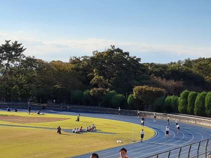 玉堤小学校の見学場所は、中央席でした。みんな全力で走りきることができました。全力を出しきる心地よさが経験できたのではないでしょうか。