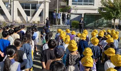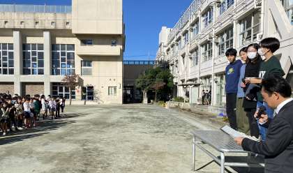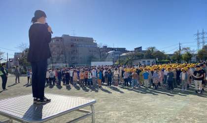 校長は、6年生の代表児童に先日行われた連合運動会について、インタビューをしました。当日の様子や練習での取り組みの様子、子どもたちの気持ちについて、よく分かる内容でした。看護当番の教員は、今週の目標「外で元気に遊ぼう」についてお話しました。