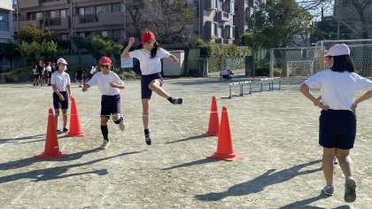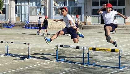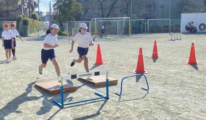 工夫した場で練習を積み重ね、50mハードル走のタイムを計りました。全力でリズミカルに走り、自己記録を更新した子が多かったです。