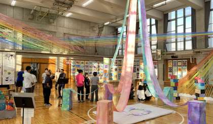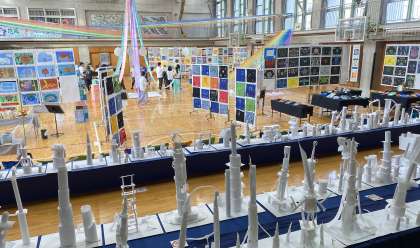 子どもたちの作品や名前、題名等を一人一人確認していきました。教職員が会場を整え、最後の確認を行いました。明日は、児童鑑賞日です。
