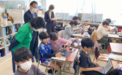 「自動車をつくる工場」について、学習を進めています。『人の手で組み立てることがどうして効率的なのか』について資料をもとに考えました。