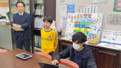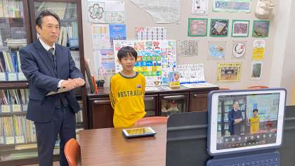 校長は、世田谷区立小中学生海外派遣事業でオーストラリア(バンバリー市)へ行ってきた5年生の児童を紹介しました。児童は、オーストラリアで経験したことや学んできたことについて、写真資料を使用して全校児童に向けて報告しました。看護当番の教員は、先週の課題について子どもたちに伝え、今週の目標「きまりを守って生活しよう」について、お話しました。