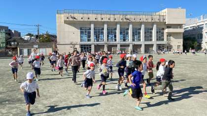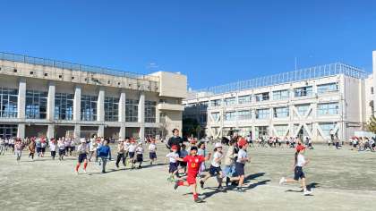 1月に開催する持久走記録会に向けて、持久走月間が始まりました。今日は、1・2・3年生が参加する日でした。一人一人が目標を立てて取り組んでいます。