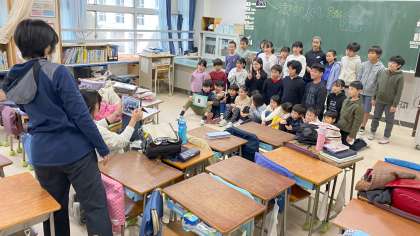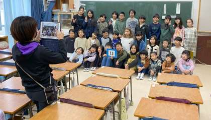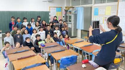 朝の時間に、お世話になった6年生にプレゼントするために、なかよし班のメンバーで記念撮影をしました。和やかな雰囲気の中で、笑顔が光りました。